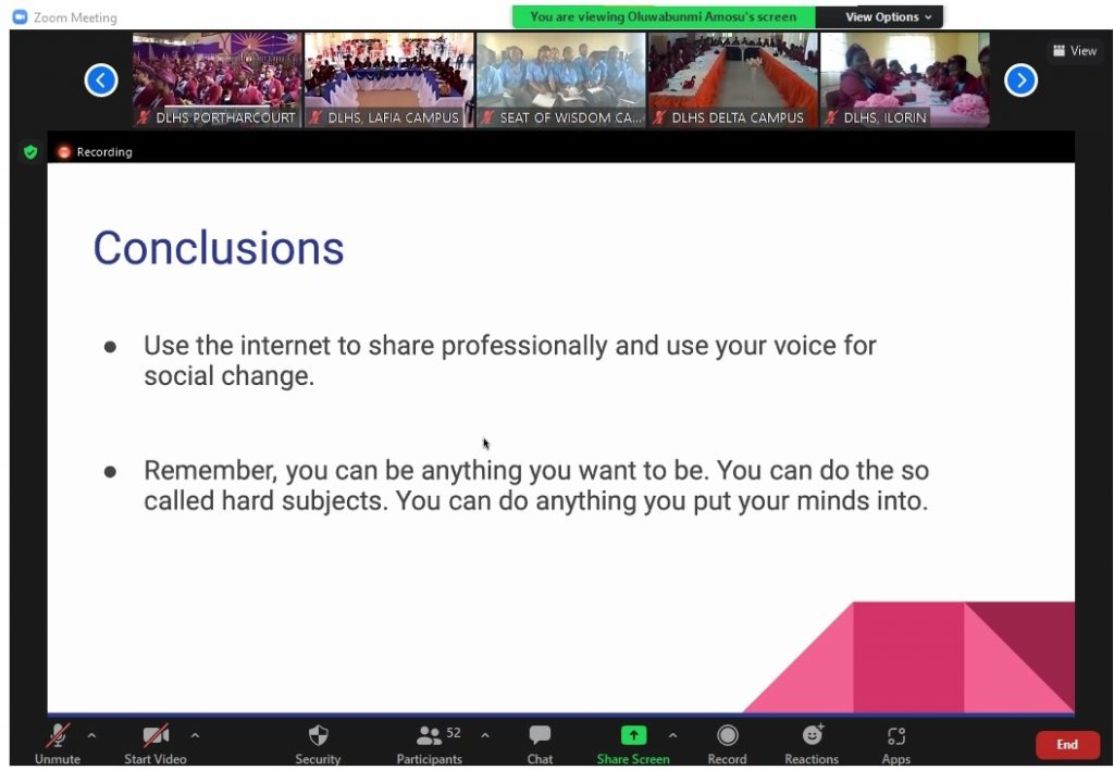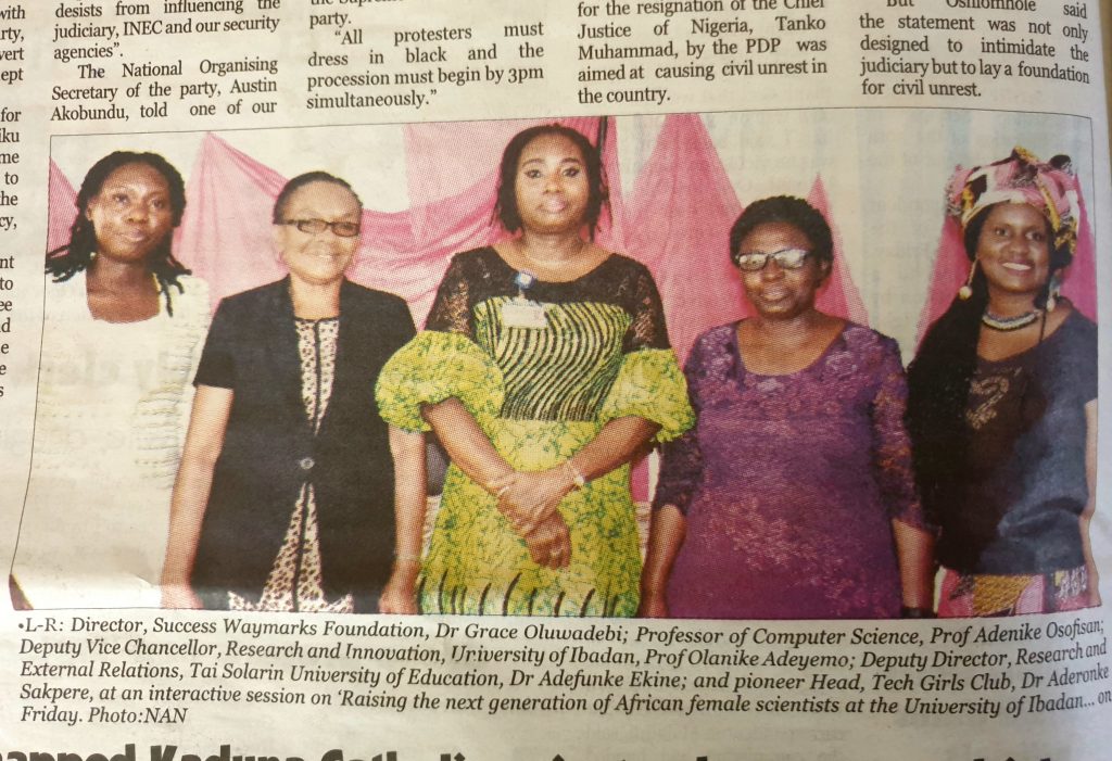 STEM Interactive Session held at the University of Ibadan, Oyo state, Nigeria with theme “Raising the next Generation of African Female Scientists”